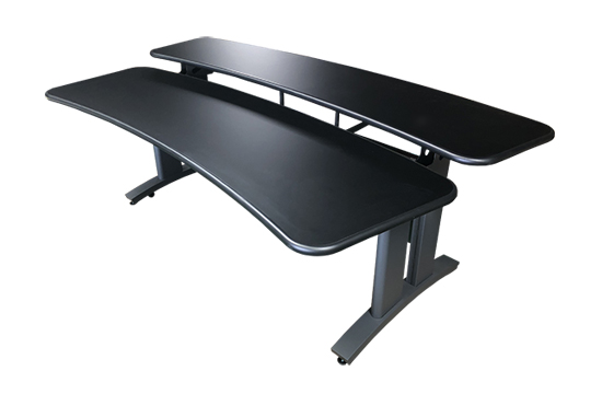テーブル色は様々な種類からお選び頂けます。 テーブル淵はラウンド形状で、柔らかな質感の木工品です。下部フレームは強固でありながらデザイン性を持たせたスチール製で、ケーブルマネージメントシステムも搭載しております。 キャスター・レベラーを標準装備。 設置スペースや機材レイアウトに応じて特注製作も承っております。